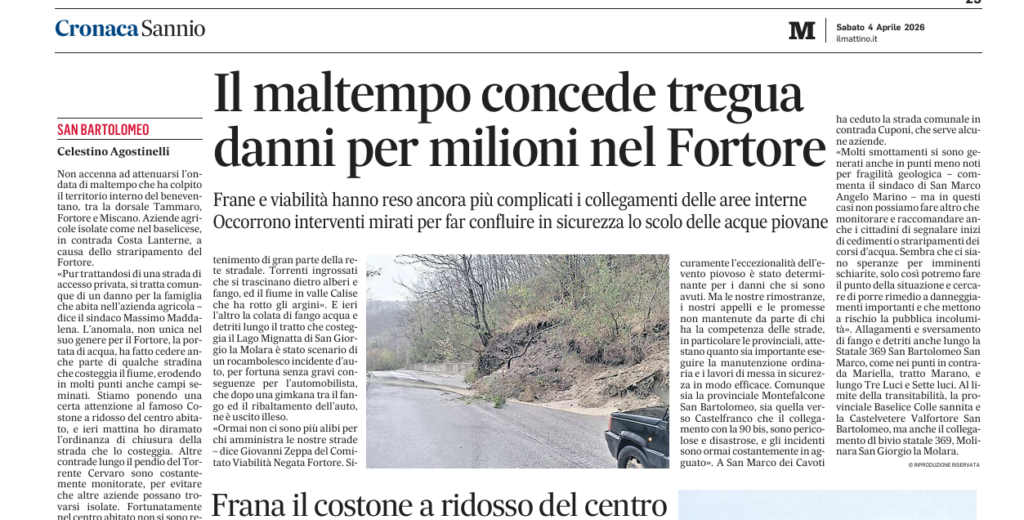 Non potrà il Presidente De Caro sistemare con le sue mani le strade franate, i corsi d’acqua esondati sui campi, i danni alle colture, ma la vicinanza istituzionale ai paesi della Daunia fa bene alla politica.